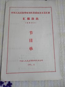 中国人民武装警察部队首届业余文艺汇演——汇报演出(歌舞部分)节目单。