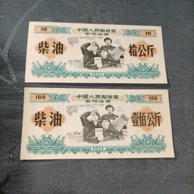 中国人民解放军油票 柴油10公斤 100公斤各1张 1971年