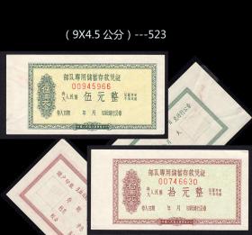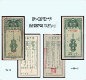 贵州省中国银行五十代年《优待售粮存单--五万元》两枚价:(17-18)--623