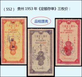 贵州省1953年中国银行《定额存单》三枚价:(17-18)--552。
