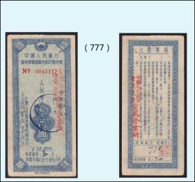 贵州省中国银行1954年《优待售粮存单--叁万元》:(17-18)--777。