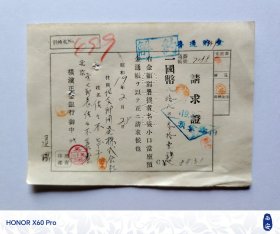 【7232】1944年田中久子 第七部长佐佐木喜贯签名、钤印《横滨正金银行御中·国币请求证》支票凭证1张,自然旧,有装订孔,具体品相如图。