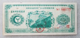 益阳砖茶香万里 湖南省益阳茶厂企业短期融资劵 伍佰圆 1992年 中国银行 益阳 茯茶 黑茶 (稀缺品种)