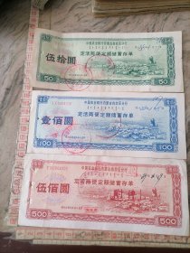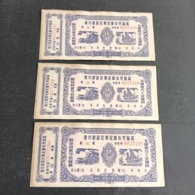 中国人民银行通辽市支行【地方建设定期定额有奖储蓄】连号3张,面值肆圆(对奖号0027288-90)3张(勤俭持家节约储蓄。支援地方工业建设)——更多藏品请进店选拍选购!