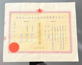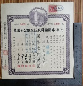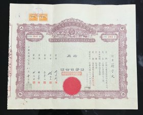 股票:民国38年《上海中国国货股份有限公司股票》一张(并贴华东区税票一枚),品相看图