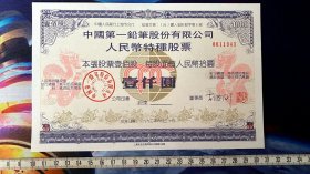[老股票] 1992年中国第一铅笔股份有限公司股票B股壹仟圆一枚