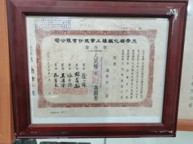 民国36年中国萃众制造有限公司,确保真品,尺寸:180×198毫米,该公司生产414毛巾,每个人家里可能常用414毛巾,不一定有该公司股票,入门级。