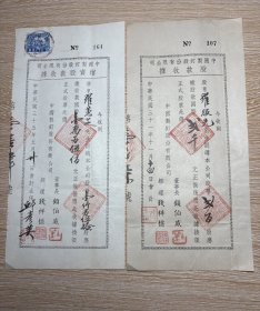 民国37年印发的《中国纺织建设股份有限公司股票》二种,品相看图!
