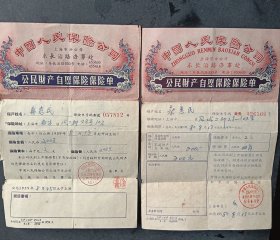 中国人民保险公司《公民财产自愿保险保险单》(1958-1959)两张——更多藏品请进店选拍选购!(袋25728)
