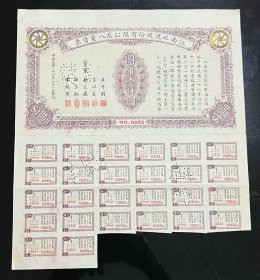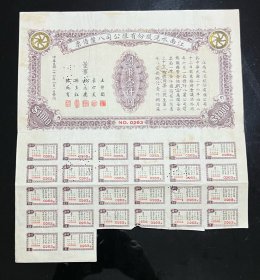 民国股票民国二十六年江南水泥股份有限公司八厘债票,确保真品,尺寸:310~275毫米,仅发行1800张。注:抗战南京保卫战中,德国人卡尓-昆德,丹麦人辛德贝格等国际友人在厂区内庇护救助了大批难民和中国军队伤员3万余名,被誉为南京的"诺亚方舟"。