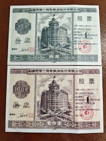 [新中国股票] 上海市第一百货商店股票壹股和拾股各一枚,品相如图