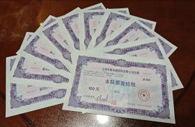 [新中国股票] 1992年 上海双鹿电器股份有限公司股票十连号合售,带水印防伪