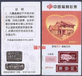 彩票收藏:中国福利彩票【新天地之一,小楼别墅】面值贰元,石家庄胶印厂印制,正背如图。