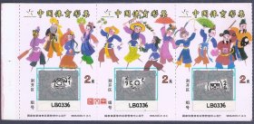 老体彩收藏品:9808J50ELH-中国体育彩票-【民俗传统花会-高跷会】面值2元(5-1)打渔杀家(5-2)霸王鞭(5-3)七品芝麻官),带左边、3枚横连张,天津乐达利印刷有限公司承印,如图。