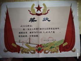 河北塘沽盐业专科学校制盐工艺干部甲班《结业证书》。1960年8月。学员江苏人。有校长范仰民签名章。照片上学校钢质公章。有力争红专套红美术字。火红年代的特殊印记!轻工业部塘沽盐业专科学校,前身为塘沽盐务学校,有“盐业黄埔”之美誉,的中国轻工业部塘沽盐业专科学校后并入今天津科技大学海洋学院。范仰民,河南滑县城关区禹村人,时任轻工业部盐务总局副局长。稀见天津盐业史材料。34*24厘米。。