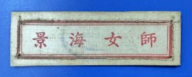 苏州教育资料 1951年6月(撤并前夕)—— 《景海女子师范学校》 教师 布标 胸标—— 景海女子师范学校在中国教育史上具有重要地位,赵寄石、杨荫榆、王季玉、吴贻芳等教育家曾在此任教或求学,培养了大批杰出女性人才。学校于1952年7月18日撤并,该校师范部并入苏南新苏师范学校,初中部由私立振华女子初级中学接办,校舍也并入了江苏师范学院(苏州大学)。