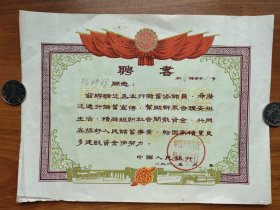 60年代中国人民银行温州市支行关于储蓄的聘书..