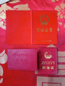 中华人民共和国工会会员证、中国共产主义青年团团员超龄离团纪念证、奖励证书(同一人合售)
