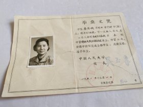 中国人民大学毕业文凭(1961年),详见图