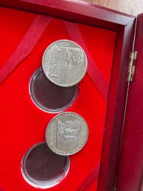 中国人民解放军驻港部队进驻香港特别行政区纯银 纪念章,中华人民共和国政府恢复对香港行使主权升旗纯银纪念章,两枚一对儿同时出。