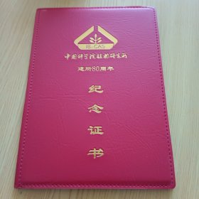 中国科学院植物研究所建所80周年纪念证书(葡萄育种专家植物引种驯化专家黎盛臣)