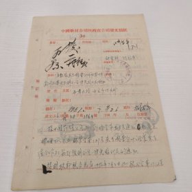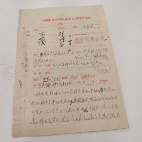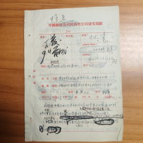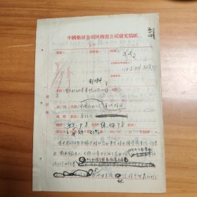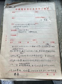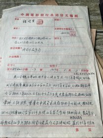 五十年代中国电影发行公司发文手写文件两张