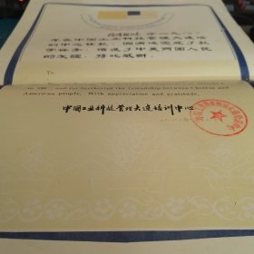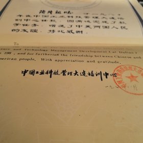 1980年,中国工业科技管理大连培训中心,任教证明。陶隆祖,增进了中美两国人民的友谊