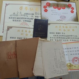 葡萄育种专家植物引种驯化专家,中国科学院植物研究所研究员黎盛臣的一些证书6件及手稿80多页