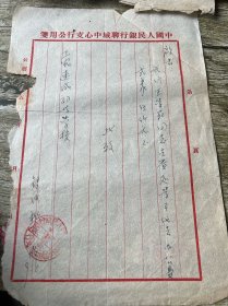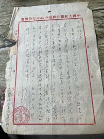 五十年代中国人民银行聊城中心支行信函一份