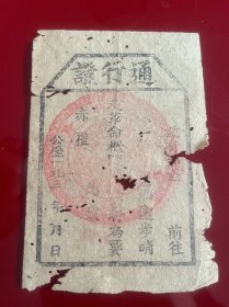 红色珍品 民国通行证,中国工农红军第四军政治部之印。虫蛀孔洞,破损较多。