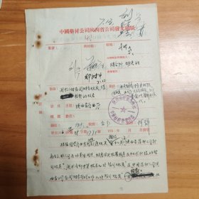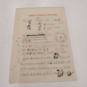 五十年代潍坊市新华影剧院写给中国电影发行公司山东省办事处的信