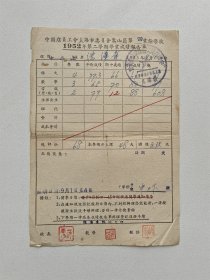 中国店员工会上海市委员会嵩山区第四业余学校,1952年第二学期学业成绩报告单。