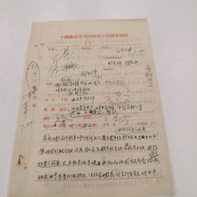 1954年一份完整的中国影片经理公司华东区公司山东省办事处公文处理单一份完整