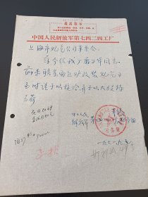 最高指示中国人民解放军第七四二四工厂介绍信 12月11日
