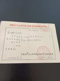 中国共产主义青年团上海市卫生局委员会介绍信 12月11日