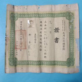 民国三十八年上海市电业教育事业协进会主办应用技术讲习所证书——所长苏祖圭是中国近代无线电工业和广播事业的先驱之一