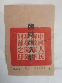 原南京中国人民解放军军事学院临时出入证 1950年代早期老证件,繁体字,带编号,红色印章清晰,纸质有年代感,边角有旧痕,整体保存不错。适合军事、历史、老物件收藏。 二手物品,看好下单,不接受七天无理由退货。