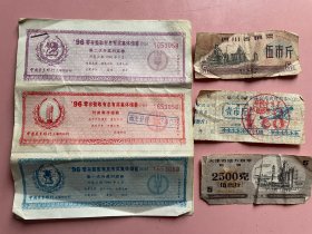 全部一起,合售,96零存整取有息有奖集体储蓄对奖券,中国农业银行上海市分行,四川省粮票,武昌县食品公司卖猪肉票,天津市地方粮票粗粮