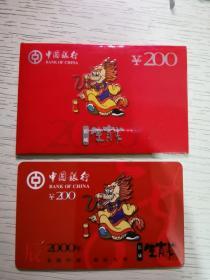 中国银行 2000年 十二生肖纪念卡 长城生肖卡 龙卡 有外套一枚 面值200元 编号018144
