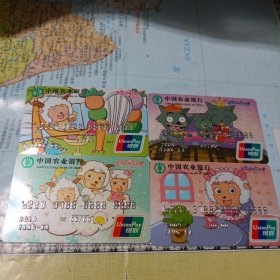 中国农业银行金穗喜羊羊与灰太狼联名卡一套4张 收藏卡编号带IO个8