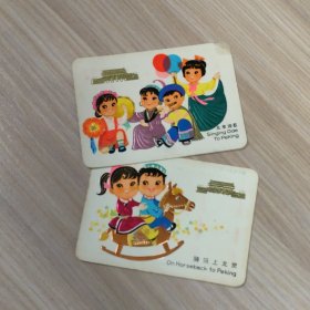 年历卡 1977年 北京颂歌 骑马去北京 2枚合售 年历片
