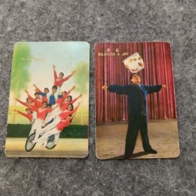 年历片:年历卡:杂技:《顶坛、车技》1973年中国化工进出口公司上海市分公司 2张和售