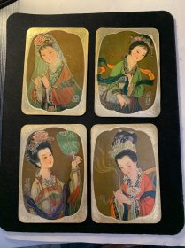 年历卡 老物件 1980年 古装美女年历卡 四大美女 四枚合售 中国古代四大美女,即西施、王昭君、貂蝉、杨玉环 。四大美女享有“沉鱼落雁之容,闭月羞花之貌”的美誉。“沉鱼、落雁、闭月、羞花”是由精彩故事组成的历史典故:西施浣纱,昭君出塞,貂蝉拜月,贵妃醉酒 美品 稀缺品