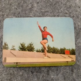 年历片:年历卡:1973年:平衡木(中国轻工业品进出口公司山东省分公司)【一张】稀少品种
