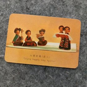 年历片-1973年:中国机械进出口总公司年历卡[高歌欢唱(泥人)](1枚),请看图自检,保真保老