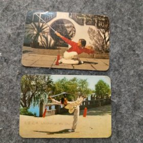 年历卡:年历片-1973年:儿童武术 舞剑(中国机械进出口总公司)【2枚合售】 包真包老