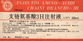 中国重庆西南制药厂:支链氨基酸3H注射液 4.26%。