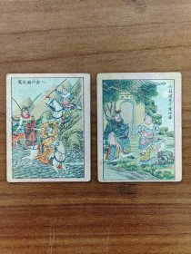 民国烟卡2张,《金沙滩救驾》和《薛礼月下叹功劳》,中国福昌烟公司出品,6.5*5CM,9品