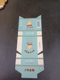 稀少天蓝色卡未使用烟标《千河高级滤嘴香烟,烟标(卡标)》1枚,昆明卷烟厂、徐州卷烟厂联合出品,中国东台市烟草公司专卖