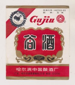 哈尔滨中国酿酒厂谷酒标(中国首届食品博览会奖)